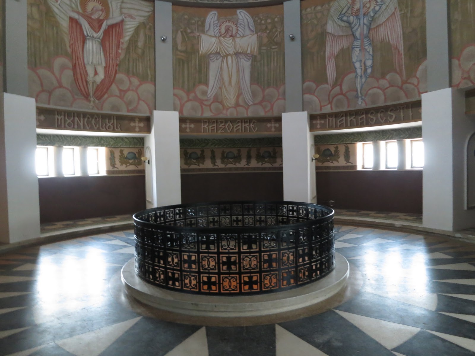 Constuctia are un hol circular din care se desprind culoare către criptele soldaţilor. Sarcofagul central al Generalului Eremia Grigorescu este foarte elegant cu o construcţie ca un altar într-o parte şi fotolii sculptate din piatră.